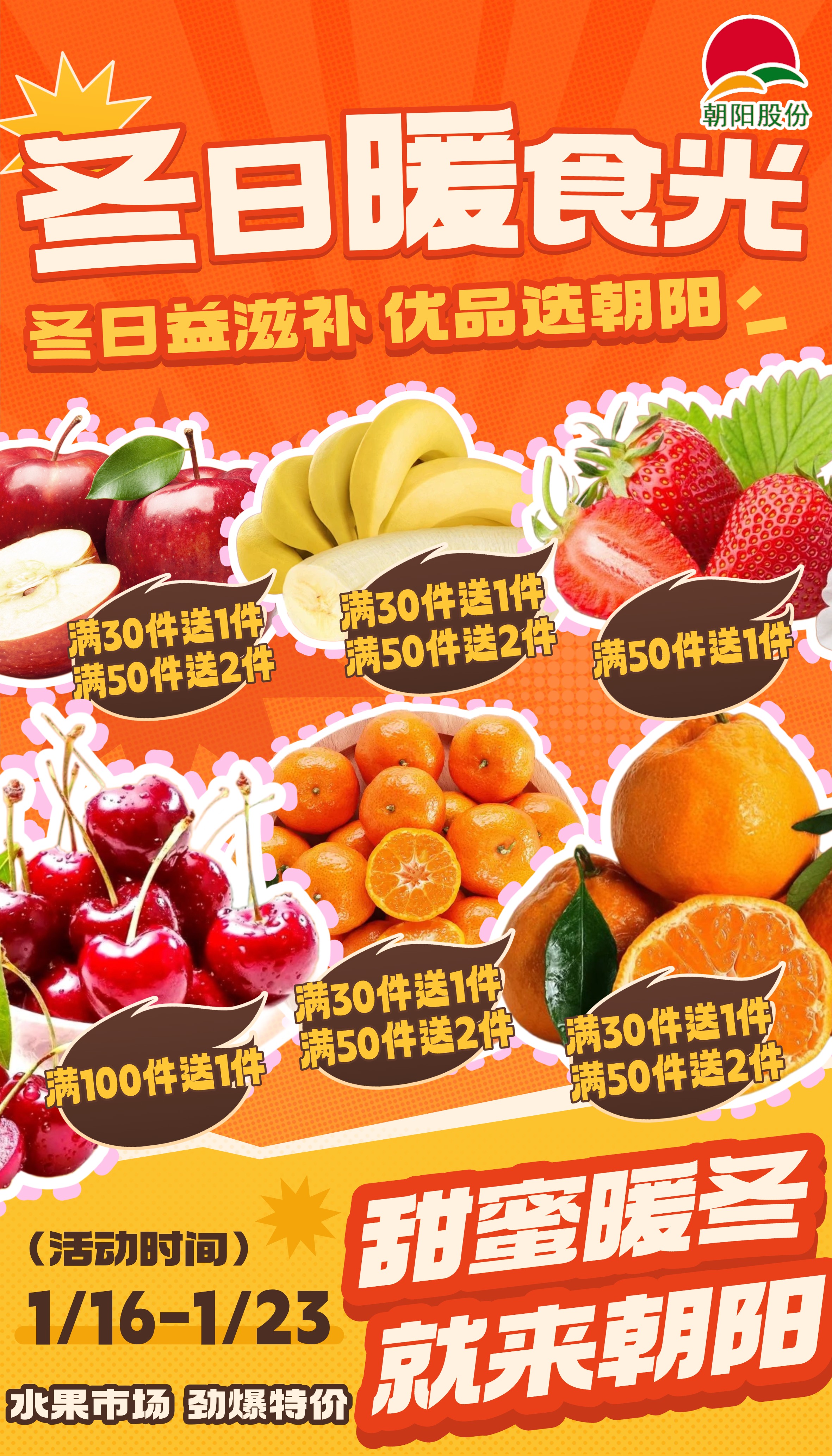 寒風(fēng)凜冽,暖食暖心!當冬日的煙火氣遇上實打?qū)嵉牟少徃@?,幸福感直接拉滿!朝陽農(nóng)產(chǎn)品大市場“冬日暖食光”蔬果促銷活動溫情啟幕,1月16日-1月23日,精選當季優(yōu)質(zhì)蔬果,全場促銷價均低于行情價,勁爆讓利不停歇,為你承包整個冬日的新鮮與實惠!